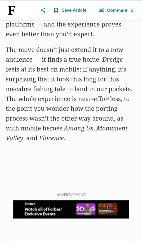- Forbes ad in Forbes Mobile: