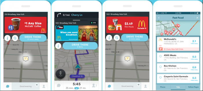 - Waze displays location-based ads that are relevant to users’ current driving context, such as nearby gas stations or restaurants.